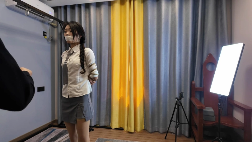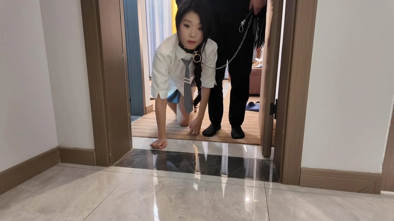 小夏初次接待体验客户,应客户定制流程,把小夏捆绑好关到笼子里面,等待客户到来后进行捆绑TJ,小夏初具奴性,口舌非常灵活