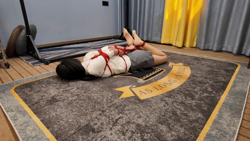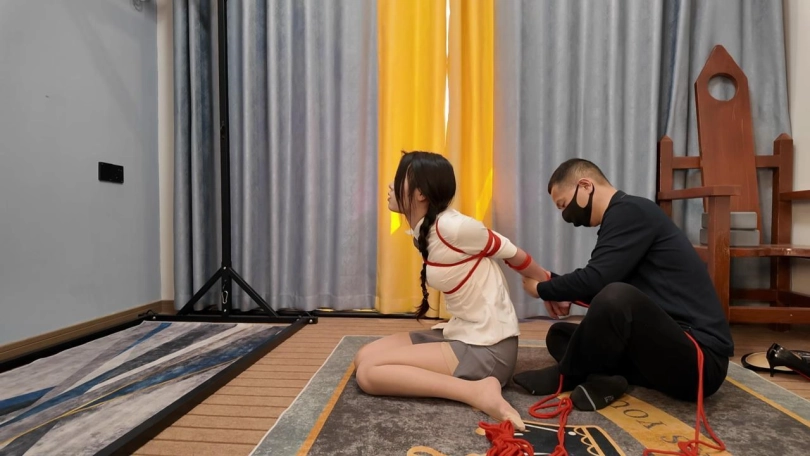 小夏被捆绑到老虎凳上面,tk折磨,小夏还是非常怕痒的,老虎凳折磨完,又紧紧的捆了一个驷马让她自己子啊地上挣扎...