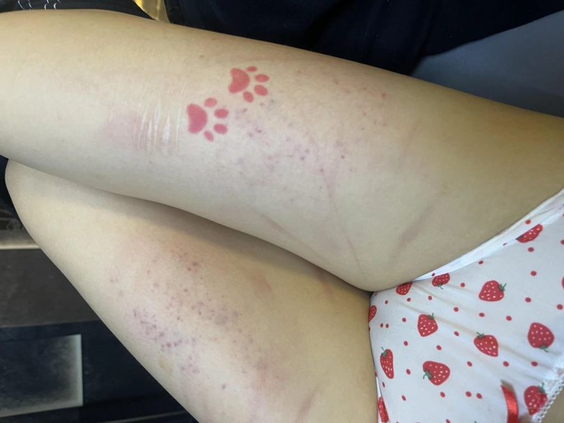 先是背面打屁股和大腿根,然后正面重新绑一次再打大腿内侧、大腿根、小腿~