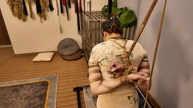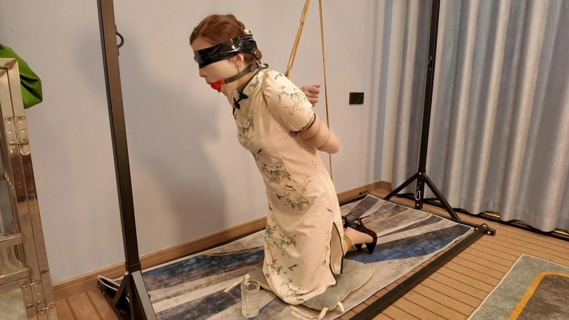 接神秘客户电话:预约佳佳定制体验、要求全程蒙眼、不许看到客户面容,旗袍五花捆绑,静电胶带蒙眼,带口球半吊跪在房间等候、体验过程全程称呼主人、体验内容,捆绑,遛狗、鞭打、羞辱、抚摸、口舌、骑乘.