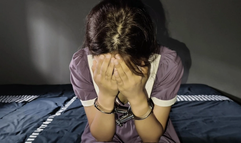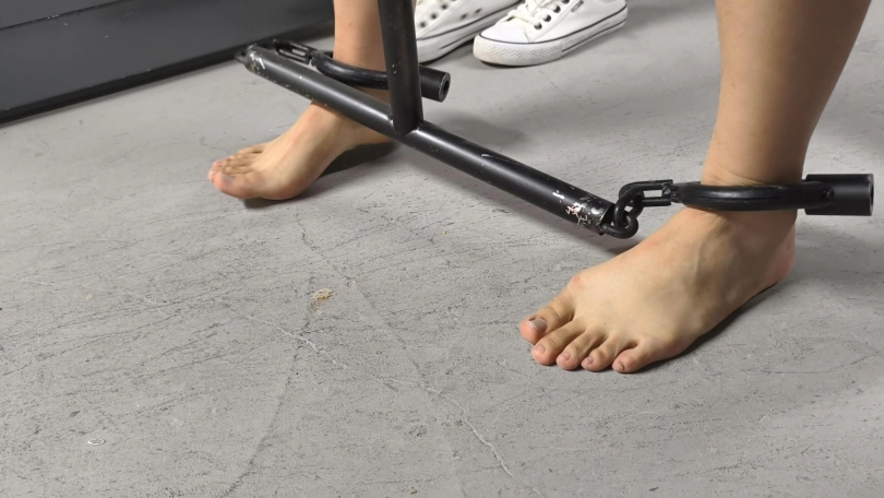 › 【忘忧社】新模特以墨因受不了上司长期骚扰,失手杀了人,被抓回来后拒不交代,被带工字铐,关小黑屋,后来终于受不了坦白从宽,换上了码法脚镣。