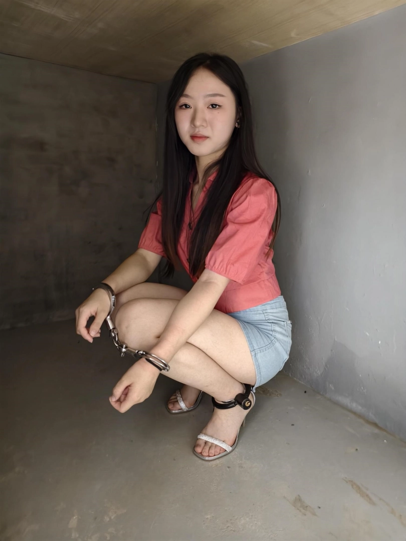 【忘忧社】新模特美女记者林嘉来名叫忘忧社的监狱风格体验馆体验,当女犯的一天,带手铐脚铐,脚镣,以及犯人不听话会遇到的各种刑罚,后高手吊起来,关笼子,上老虎凳等,度过了难忘的一天。