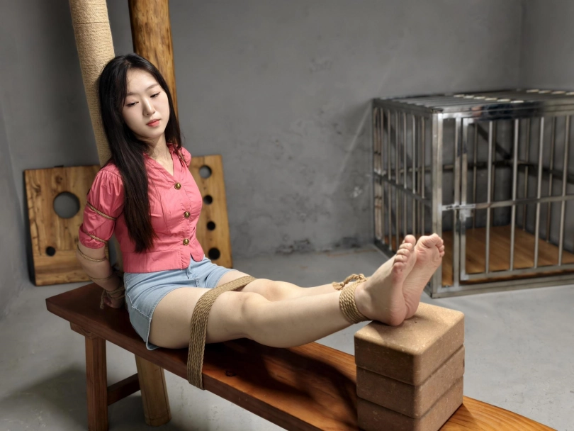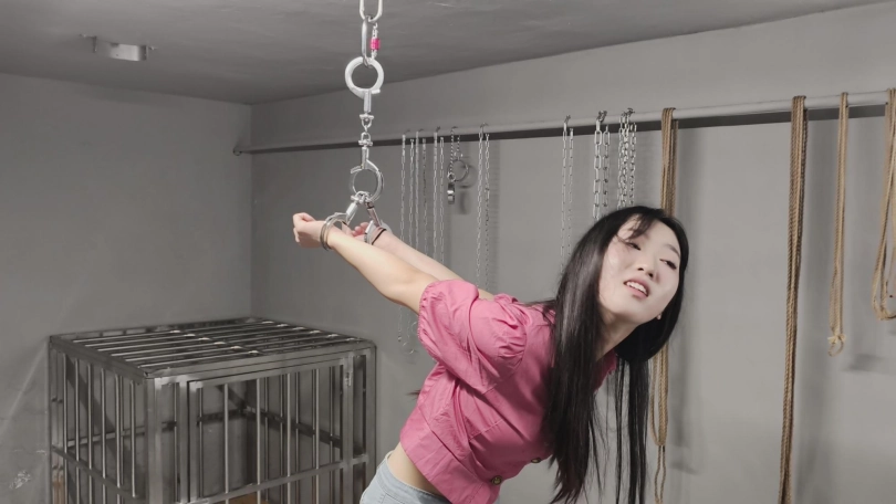 › 【忘忧社】新模特美女记者林嘉来名叫忘忧社的监狱风格体验馆体验,当女犯的一天,带手铐脚铐,脚镣,以及犯人不听话会遇到的各种刑罚,后高手吊起来,关笼子,上老虎凳等,度过了难忘的一天。