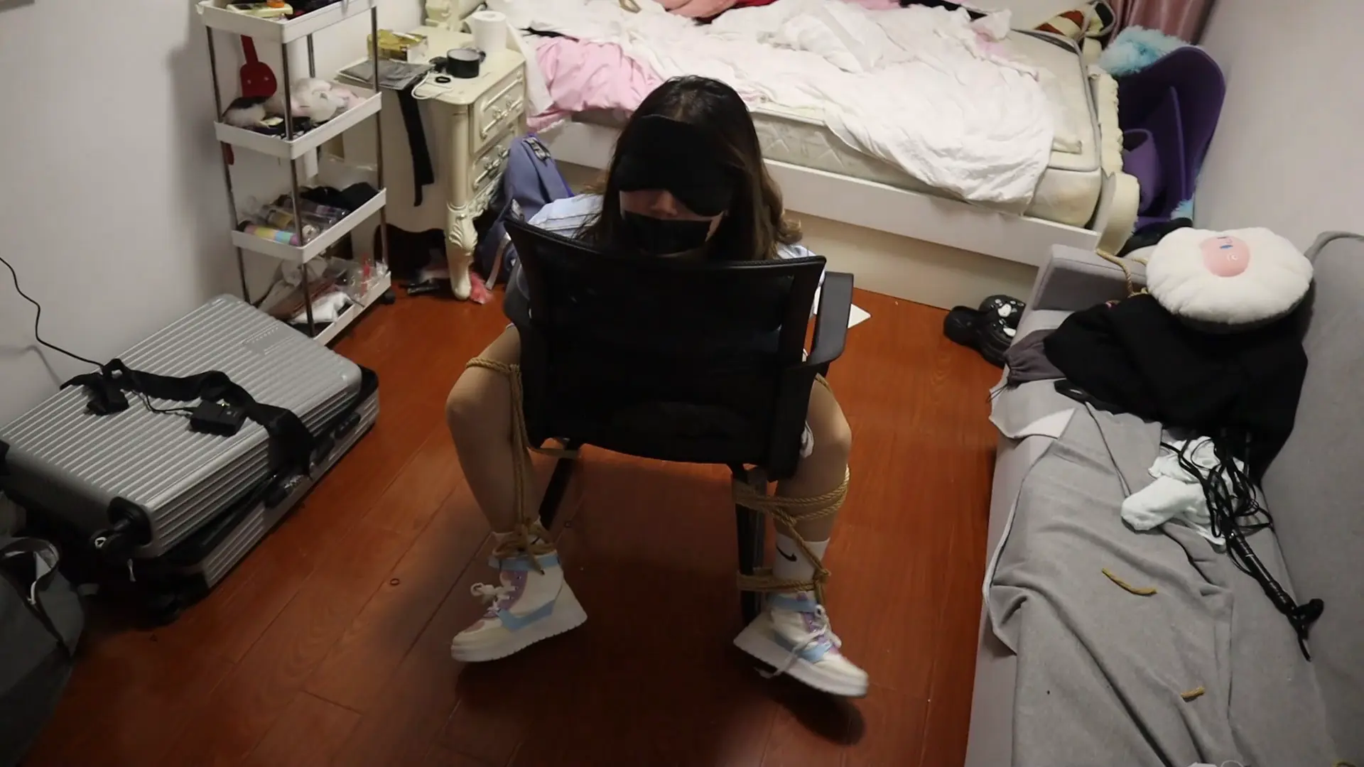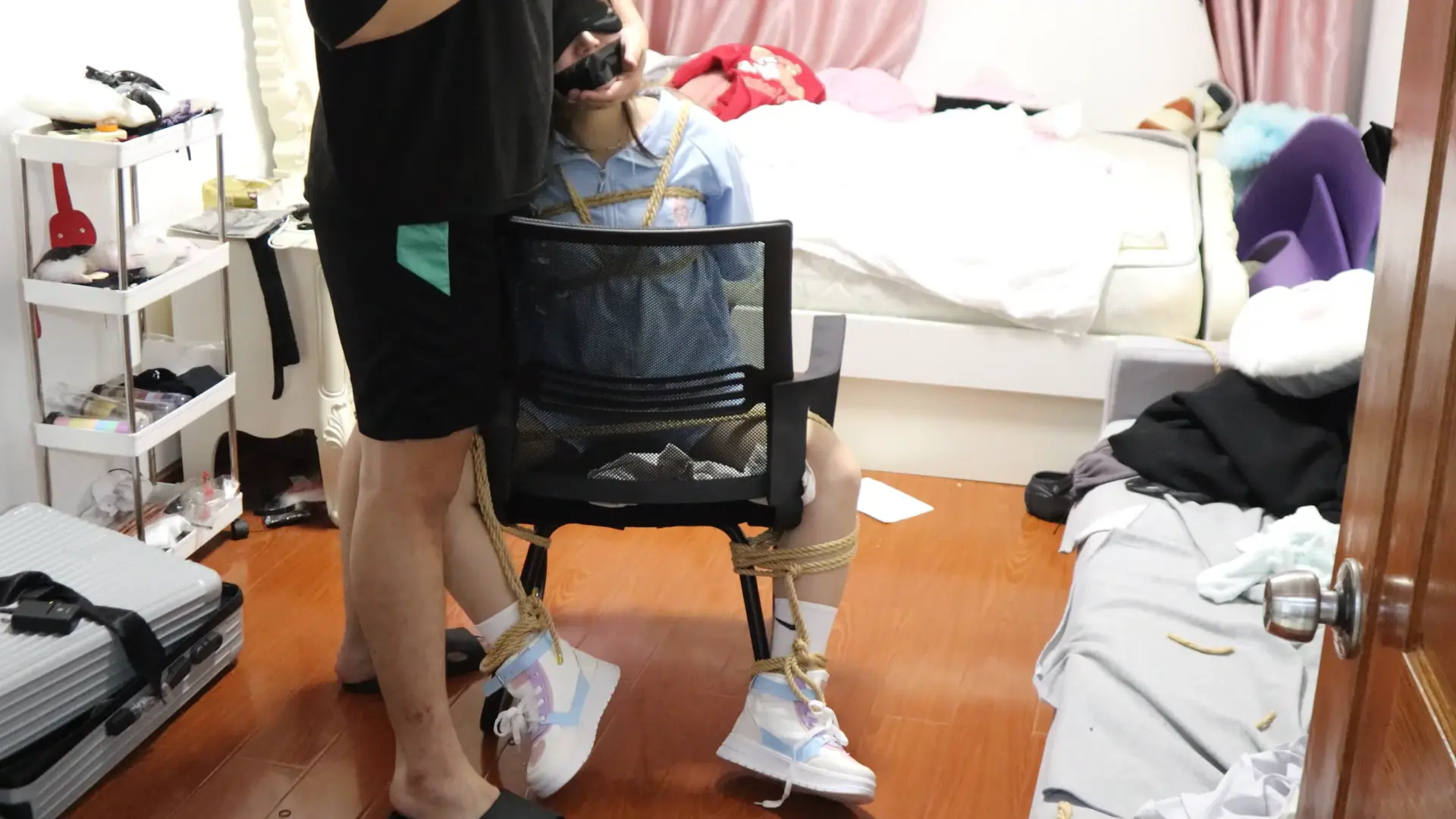 运动的元气的童颜[X_X]姑娘被捆的第一句话是:等会我还可以和你讲话聊天吗,答案是:不可以,你只会被牢牢捆住嘴巴被堵住发不出声音来,然后被调教鞭打虐待TK等惩罚才是美女的归宿