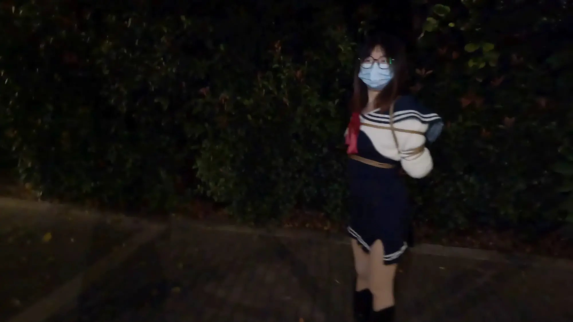 【四月绳艺学院】小m的训练课程-户外专项训练,回去的路上还被迫漏出大灯泡