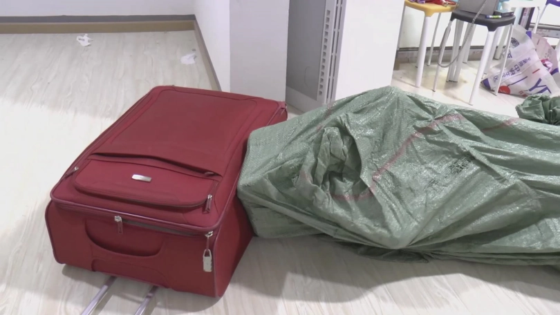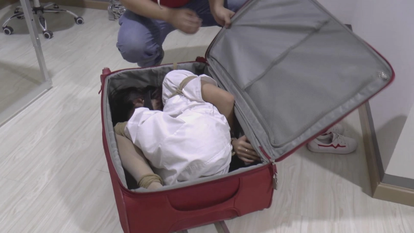 然后李光跟韩娜也将梁雨装进了一个行李箱,梁雨的眼泪也顺着眼罩流了下来...