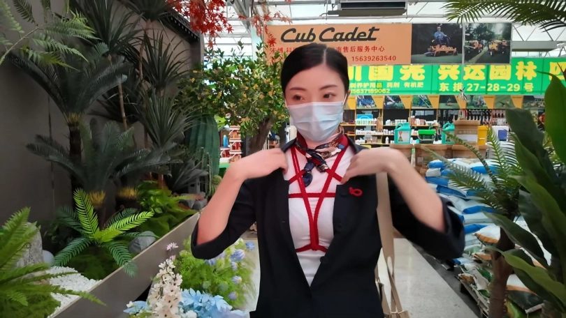 第二次带佳佳外出,带绳模外出必须捆上,白色体恤搭配红色绳子五角星,还是非常漂亮的,先去花卉市场,把工作室的几盆花更新一下,在带她去吃个饭,吃完饭带她去逛商场,抓娃娃,看电影,玩了一天,到家了免不得要吊起来调叫一番