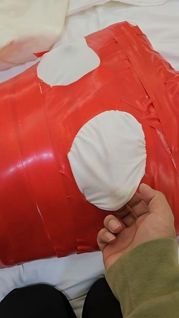 【小黑】胶带全包木乃伊,各种挑逗,真实对话,还有呼吸玩法,把胸口剪开,没穿内衣,乳头清晰可见,震动高潮,振到受不了。