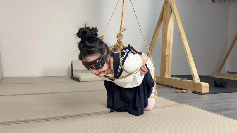 【眼眸】《水手白丝直臂加日式反绑折腿半悬吊》