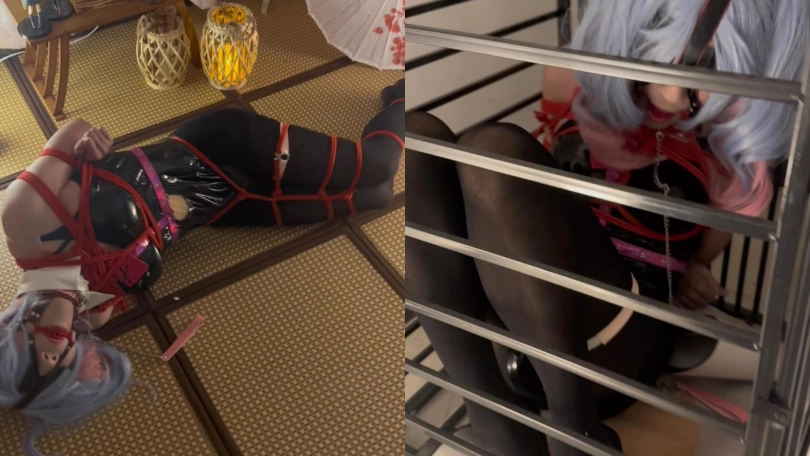 【纱柚绳屋】被紧缚堵嘴禁锢一整天的兔子洞女士(南娘)反而更加亢奋~柚里主人玩弄欲求不满的她后牵出来继续虐待,最后关灯离开,她被马具口球抬头驷马放置一晚上