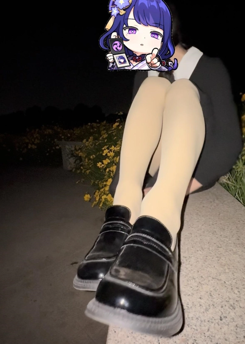 找了个小公园,穿了连衣裙加厚肉丝袜,脚上穿的一双中跟小皮鞋(有点挤脚owo)