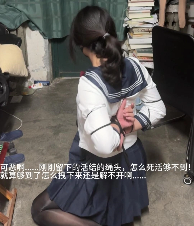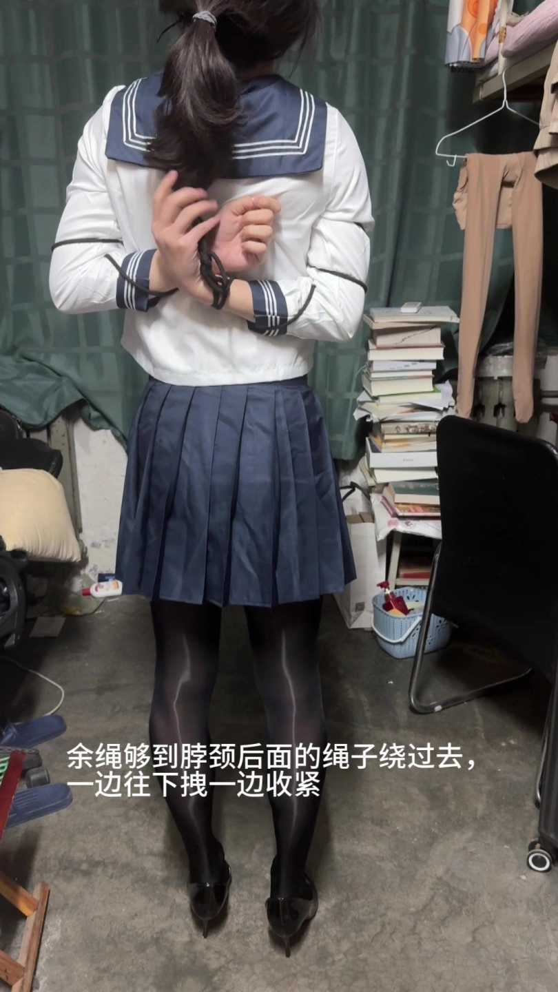 【柚里】五花自缚教学翻车,还好宿舍摸到小刀了不然真的绝望水手服+马油黑丝+侧空高跟