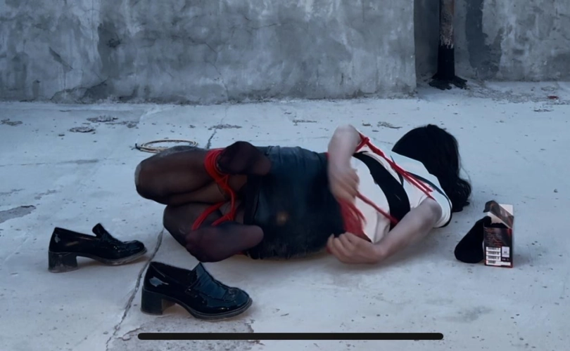 这次用的是两条十米的绳子,一条用来做一个简单的折腿缚,一条绑了一个日式自缚,因为天快黑了,甚至能在视频里看到日光逐渐变暗的过程,以至于后来闪光灯都自己启动了。这次绑好腿后,膝盖和双腿以及被小皮鞋包裹的脚就一直特别难受特别疼,绑好以后就想着赶快解开,结果还是费了好大力气才勉强解开。