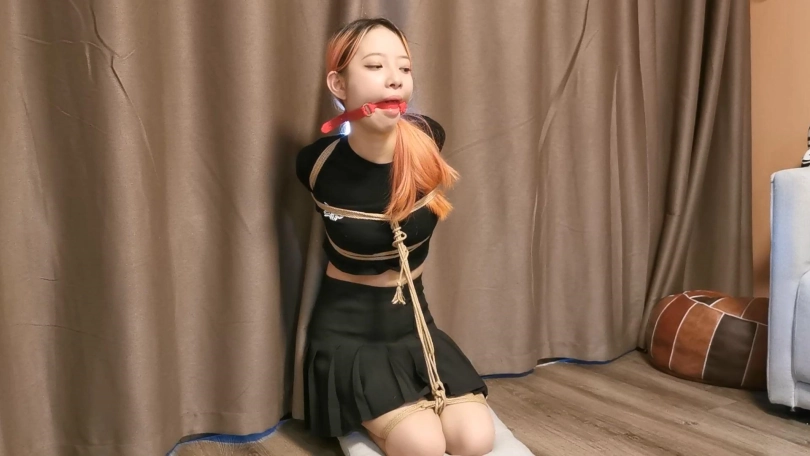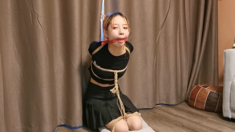 珊珊穿着露腰T恤显得小蛮腰非常诱人,把珊珊直臂捆绑,跪绑吊在窗边的栏杆上,再戴上大口球,珊珊的口水流的满地都是,滴滴答答的就没停过,最后解开珊珊都累瘫了。