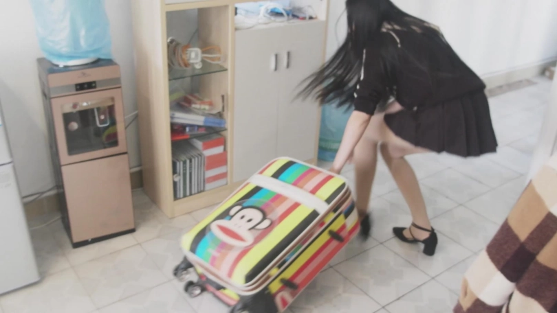 文莉以为冬冬死了,便找来一个大旅行箱,把冬冬放进去。然后准备到楼下找一个那种很普遍的黑出租。