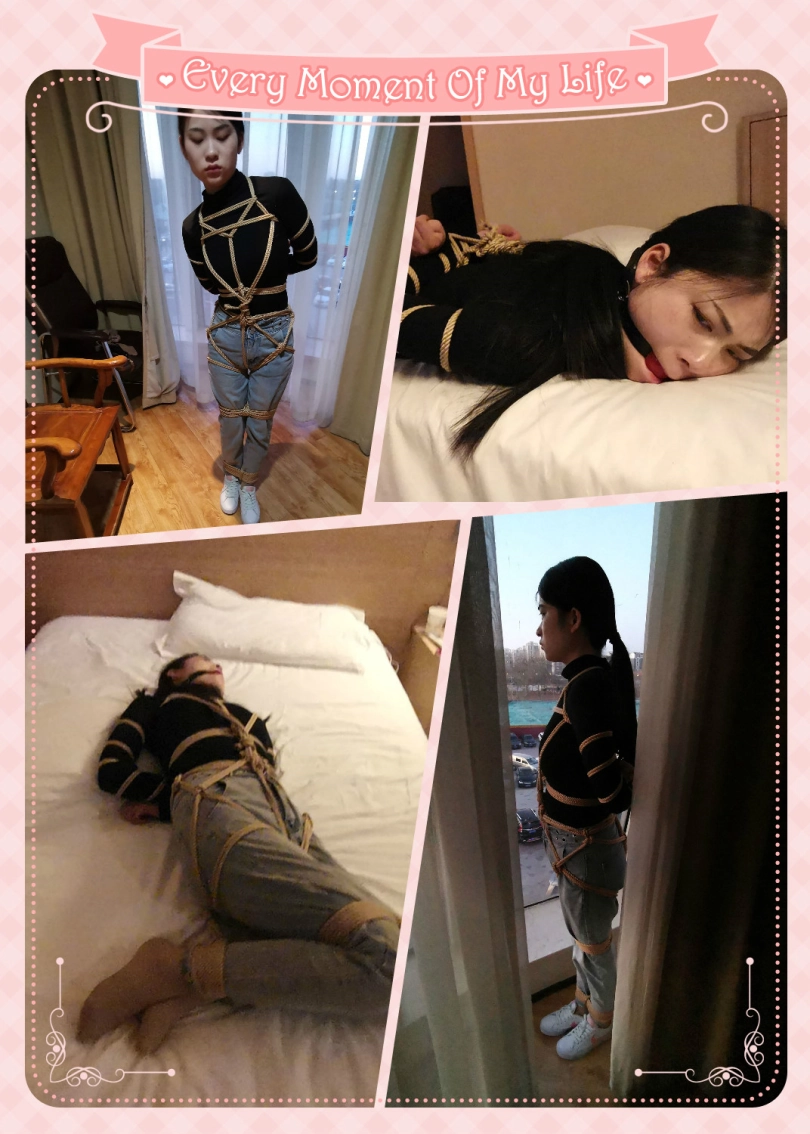 五花大绑后逼迫站在窗台前,正好被楼下的人看到,吓得赶紧躲到窗帘后面,身上密密麻麻用绳子绑着,尤其是屁股上用了不少绳子。放到床上绑上驷马,脱掉鞋子挠痒玩弄丝足。。。