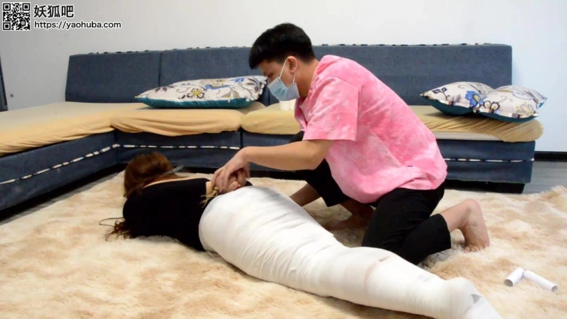 弟弟不但借机揩姊姊的油,之后还把她整个人包成木乃伊放置,更把bangbnag放进姊姊的敏感地方,再对她作多重堵嘴。