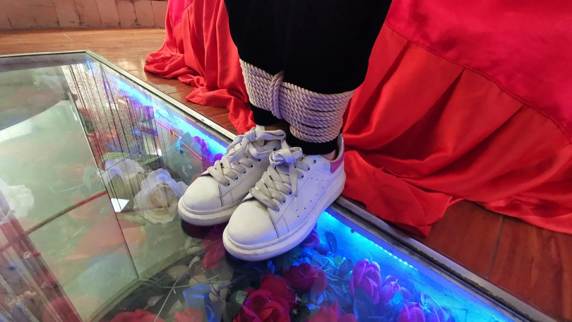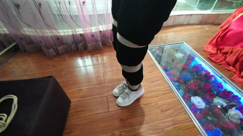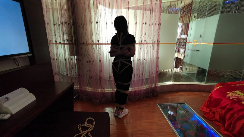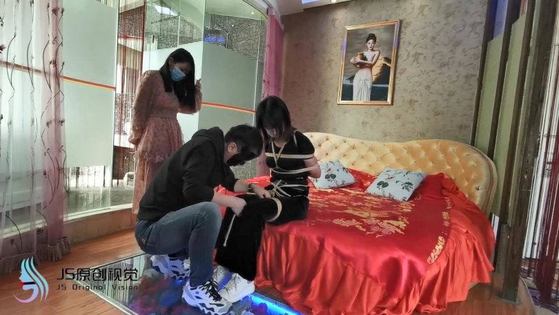 新人凌熙,疫情期间无聊,过来体验捆绑。身体柔韧度还不错,第一次面对镜头就很放得开,绑上之后还挺开心,在镜子面前照来照去,捆绑过程琳洛在一边观看学习(估计是对女绳师感兴趣,想当绳师吧)。