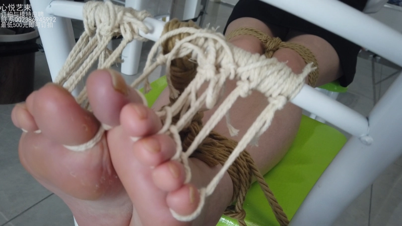 好嘛,不得不承认我是个死足控。筱筱这个脚丫怎么玩都不腻啊。紧缚上身和美腿,把一根根脚趾都固定在凳子上。一点挣扎余地不给留,抹上润滑油用道具挠痒痒。挣扎的好厉害,废了一个凳子哈哈。