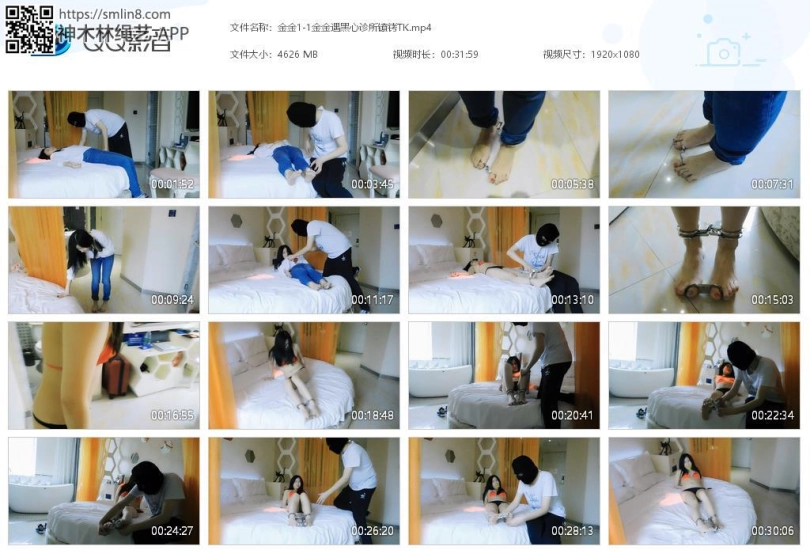 妹子诊所看病,医生开了药,妹子吃下。隔了一会,就感觉不对,然后就睡过去了。这时医生原形毕露,有妹子可以玩了。医生脱下妹子鞋袜,锁上链子脚趾铐、脚铐,然后离开,等她醒来。妹子醒了,然后发现脚被锁住了,很着急,各种喊叫,找钥匙,下地走。医生再次出现,妹子受到惊吓,求饶。医生解下镣铐,脱下衣服只剩内衣,给妹子脚腕锁上链铐、板铐、脚趾铐,然后离开。妹子发现脚被锁的更紧了,十分着急,各种喊叫,下地走,求饶。这时医生又回来了,解开板铐锁在手上,锁上拇指铐,拿出三筒把脚腕脚趾连起来,挠脚心玩耍,然后又塞上蛋蛋。最后留下妹子挣扎,等待命运。