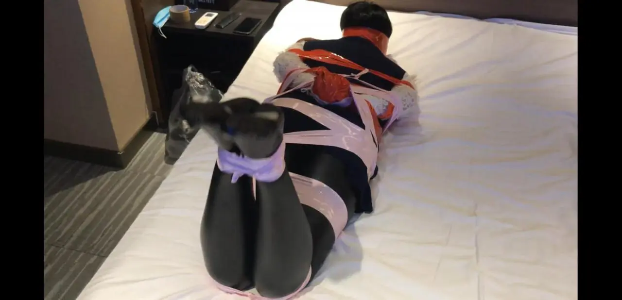黑色连袜皮裤胶带缠绕挣扎加挠脚心
