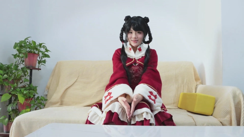 首先梦尘穿着喜庆的中式洛丽塔与大家打招呼:各位金主们大家好啊,欢迎大家收看2025年元宵节特集,我是主持人梦尘,当然作为模特我的艺名也是梦尘。