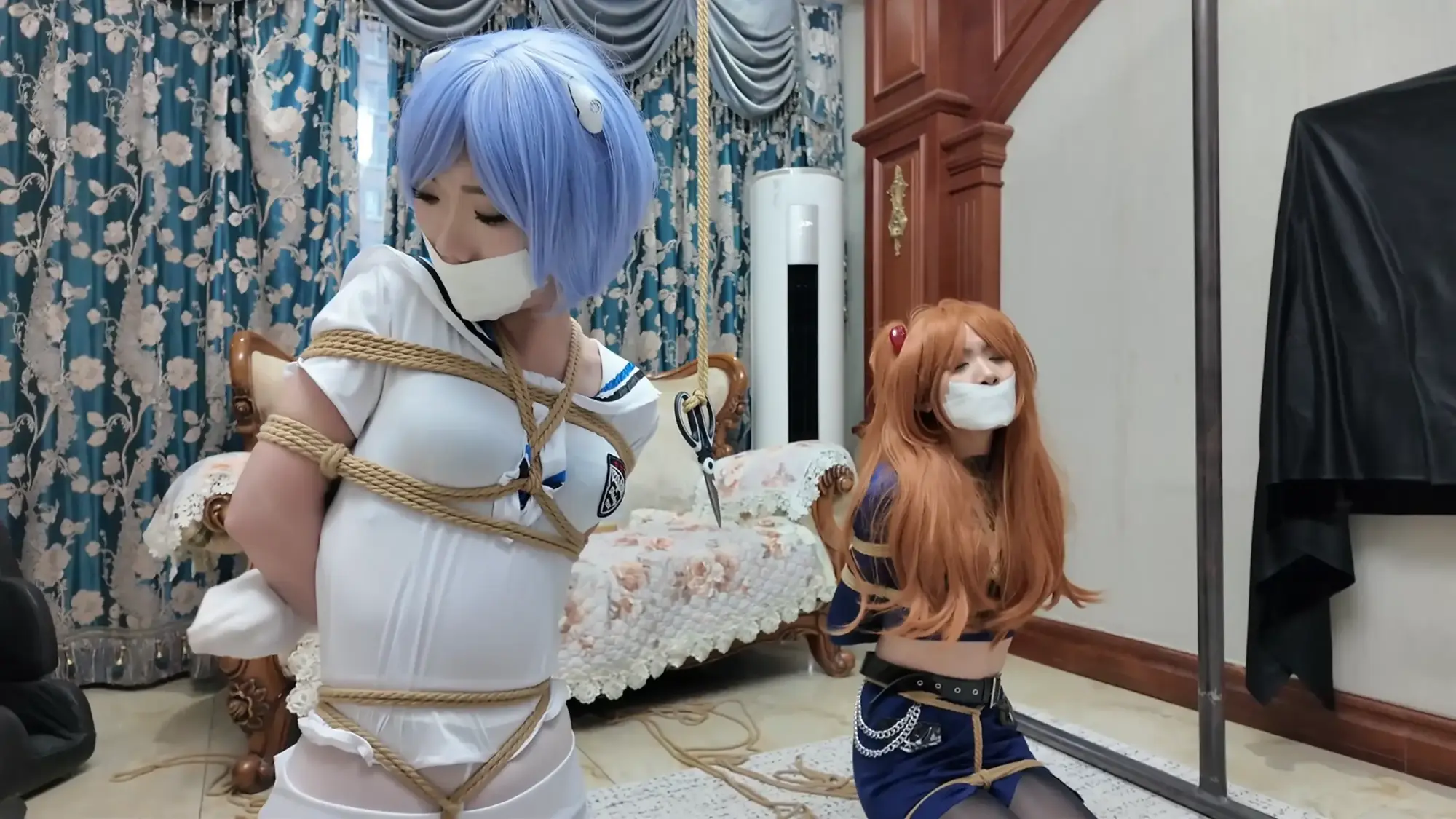 白色水手服“绫波丽”和蓝色搜查官服“明日香”的换装play!