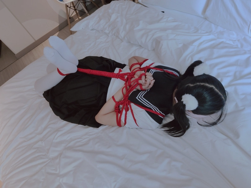 本期准备了六种生活中常见的TK工具:手指、梳子、牙刷、电动牙刷、电动牙刷马达、电动剃须刀的电动旋钮。我们会将穿着jk制服和白丝的双马尾少女用后手观音+驷马的方式紧缚起来,然后依次测试以上各种挠痒道具的效果: