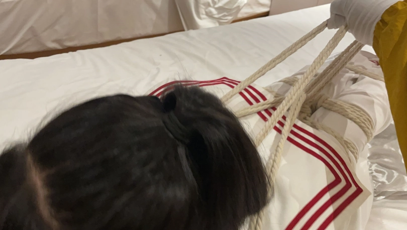 先是被直臂捆绑,大腿和脚也被绑了起来,瘦瘦高高的样子实在可爱