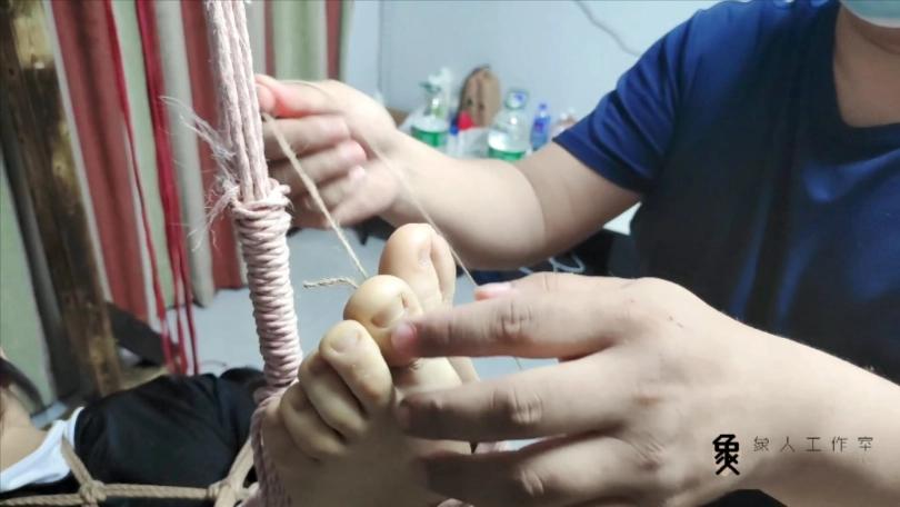 【象人】小0-极限驷马勒嘴细绳扯趾固定放置记录(后含捆绑过程)