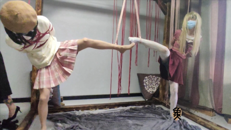 【象人】女S的双伪娘TJ,挠脚心SP(同时单脚吊缚,双倍快乐)(上)