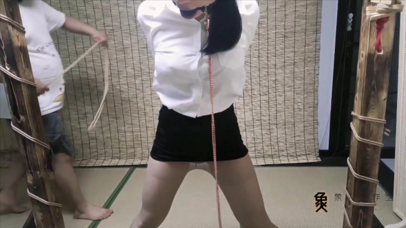 【象人】02小0-白衬衫包臀裙OL灰丝10CM高跟-遭遇歹徒玩弄,后手吊缚,驷马口水迷晕。