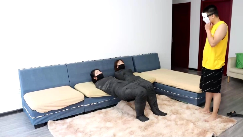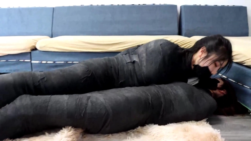 【逍遥】《神秘双人木乃伊下》2个美女被完美木乃伊全包 全包卖力挣扎全程吃力蠕动 超稀有双人木乃伊挣扎
