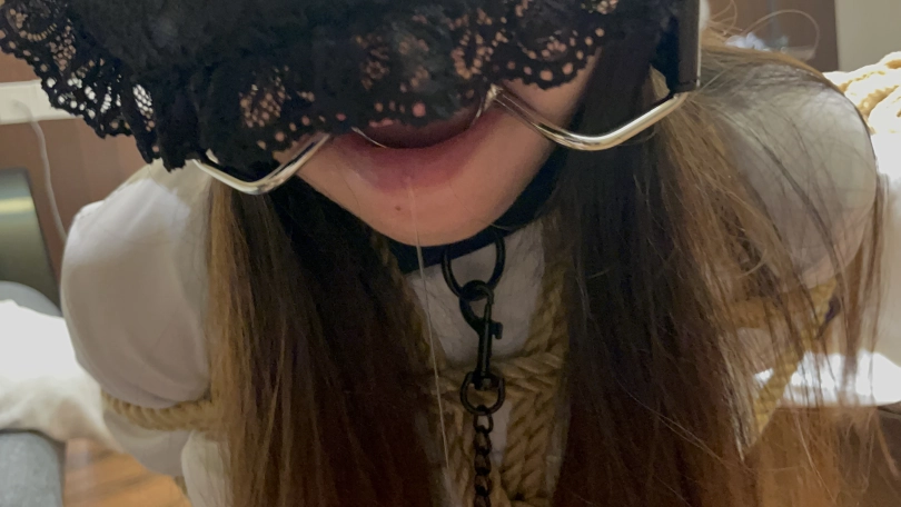 【杰仔】新人心心调教记 跪立行走边走边流口水+真实抽打呻吟+舌头玩弄+筷子虐舌+两个棒的享受+口水直流+内裤湿了声音特写+脚和腰部tk