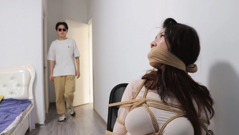 多疑的男子怀疑年轻漂亮的妻子有外遇,于是将她捆绑在家中进行监禁和拷问折磨,可怜的少妇想借上厕所之机逃离失败,结果被捆得更加严密,连上厕所也不可能了,只能独自忍受着……