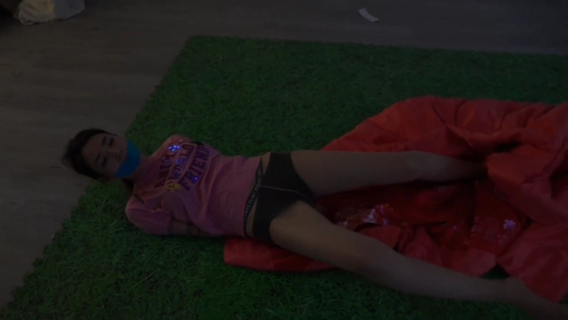 第2夜睡觉时美女试图逃跑被发现,惨被坏人加固捆绑,严密堵嘴。早上被强迫换上最初的ol装,用绳子好好打扮打扮,打包转移,美女无止境的监禁生活正式开始。
