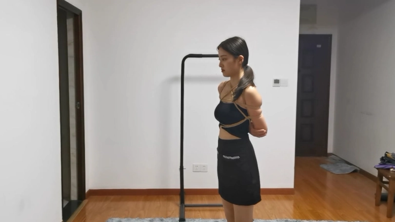 日式紧缚驷马放置,绑好后给模特戴上镂空的大口球,再用绳子穿过口球的皮带和后面的驷马的绳子连在一起,这样模特想要吐出口球就变得非常困难。但是没想到兔兔对口球非常敏感,这是我见过口水最旺盛的妹子,刚刚戴上口球口水就留下来了,之后几十分钟的放置时间口水就像开了水龙头一样一直不断的流,而模特的注意力全都在嘴巴上了,试了好几次想把口球顶出去都以失败告终,只能眼睁睁的看着口水往下流。