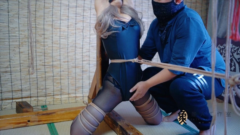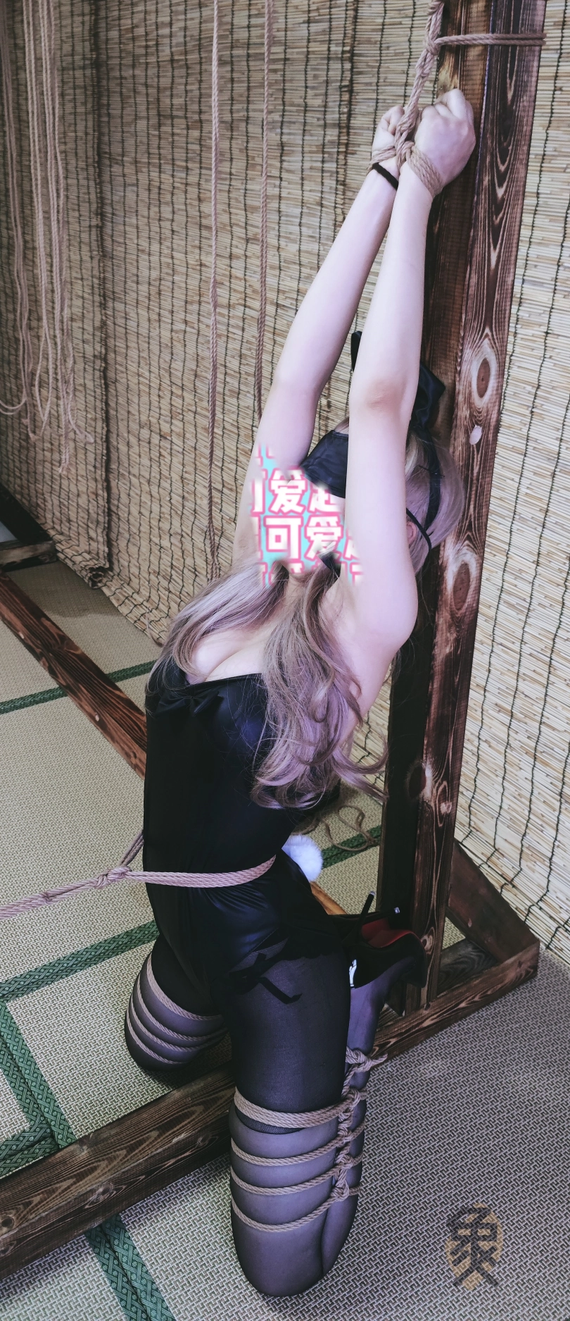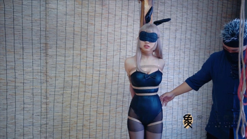 【象人】兔女郎小o!小o-兔女郎+黑丝,柱缚抚摸,y具口塞,折腿缚+前手缚放置。