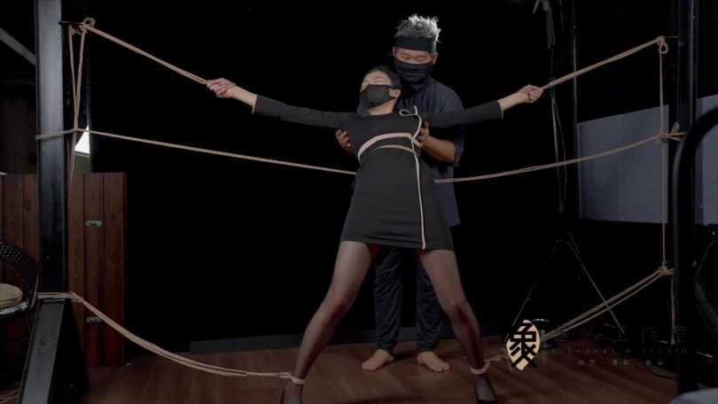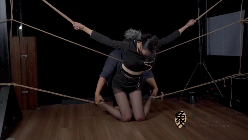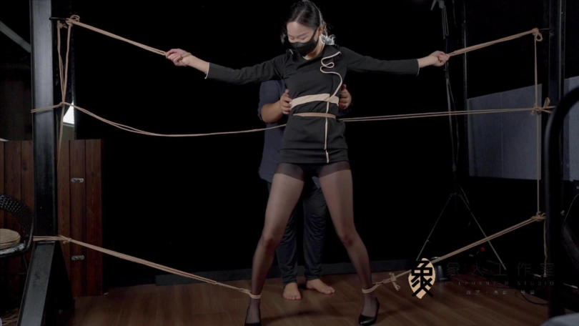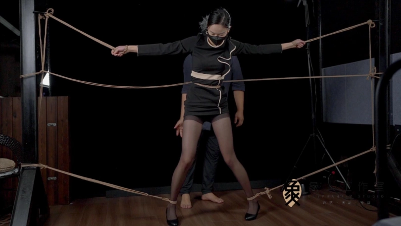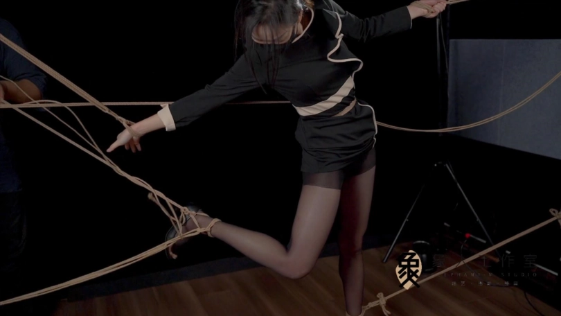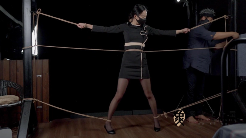 【象人】大字缚爱好者狂喜。轻语-空姐制服黑丝套,大字床缚+站立大字,1H超长折磨。