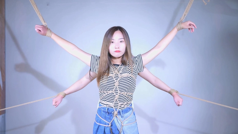 创意绳艺造型,双女千手观音缚,前面那个表情有些夸张