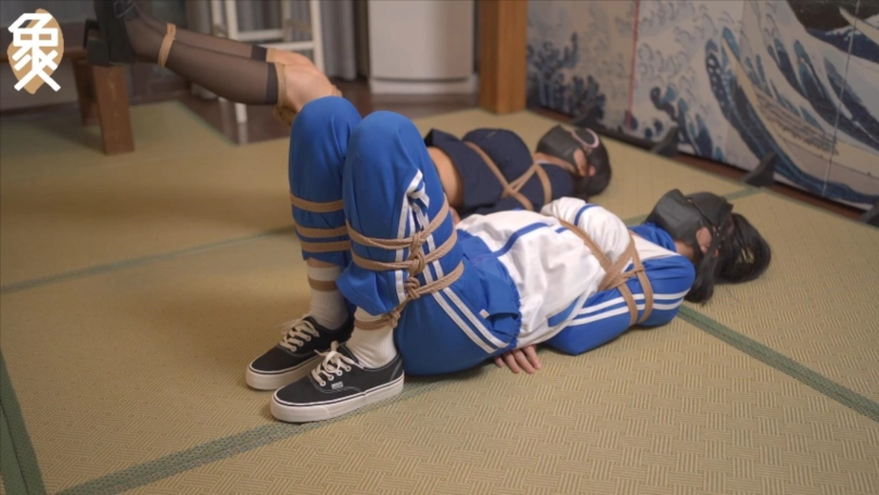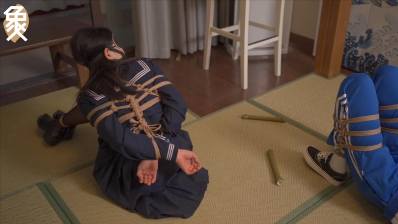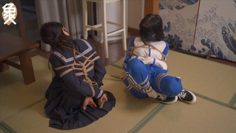 【象人】紧缚游戏。轻语&小0- 一场紧缚比赛,输了接受对方惩罚。JK小0 VS 运动服轻语。