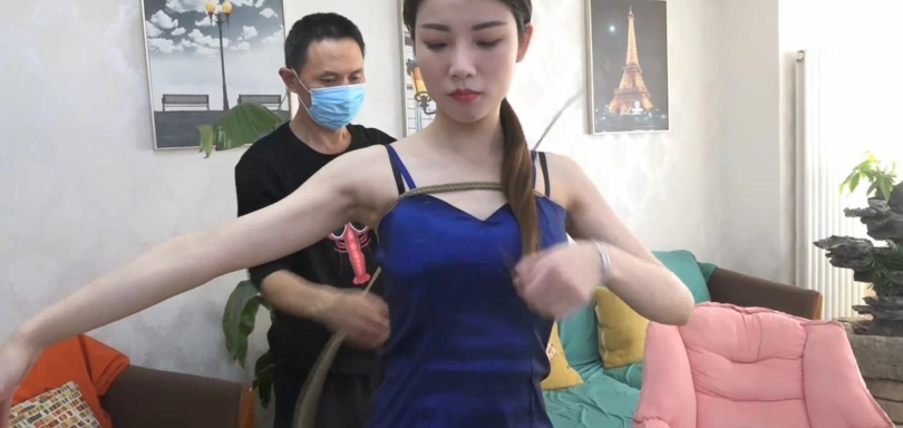 因为第一集柳洋小姐姐还是输了,所以这次就要惩罚她了,先是将她捆绑在椅子上,然后塞入丝袜,看柳洋表情应该是挺讨厌这个的,偷笑一下。捆绑好之后接着使用电击片,柳洋小姐姐被绑的一动都不能动了,还要承受腿部带来的电击,一番折腾过后为她取出嘴里的丝袜,看来塞的确实挺难受的,然后戴上眼罩,柳洋小姐姐处于一片黑暗之中,完全不知道下一步会发生什么,这时一个软球塞入到了她的嘴中,为她戴上了一个马具型口塞,又失去了说话的权利。紧接着腿部传来一阵刺痛,用着一个尖锐的齿轮在她的腿部游走,最后脱掉玉足上的高跟鞋,慢慢折腾她的玉足。