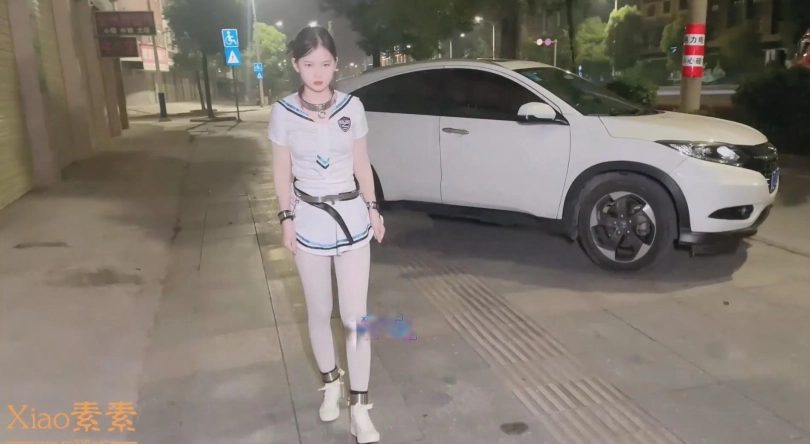 户外部分更是大胆精彩,可爱的小女奴戴着各种道具、镣铐走在熙来人往的街道,走进超市、小吃店,
