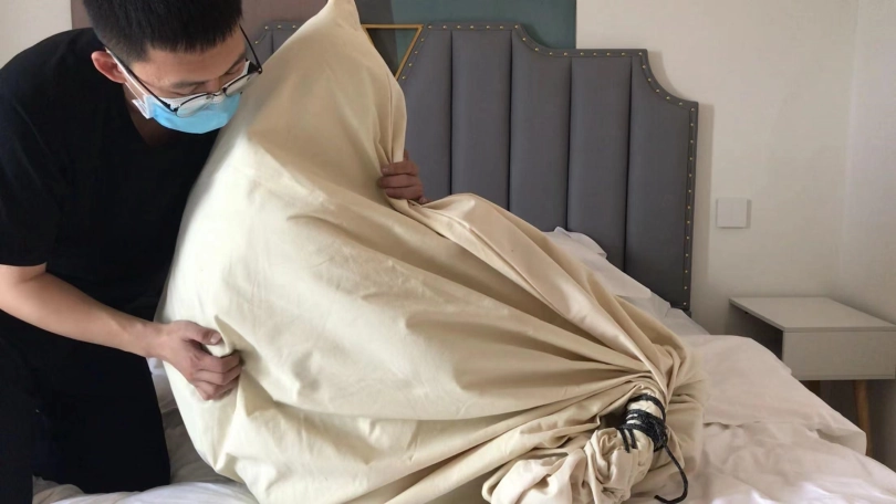 2、装袋挣扎挠痒。
