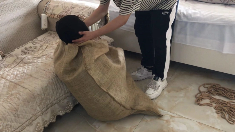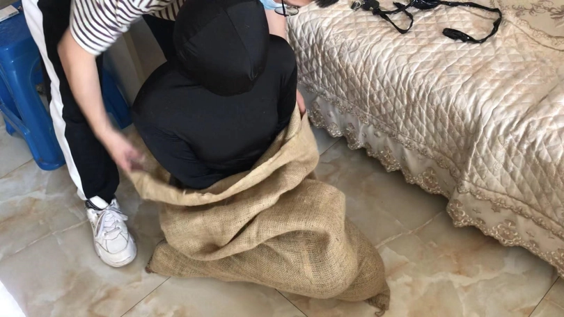 3、终于把小周塞麻袋里了,哈哈哈哈比较累人