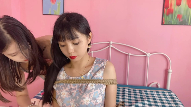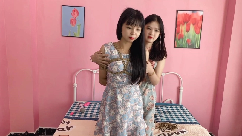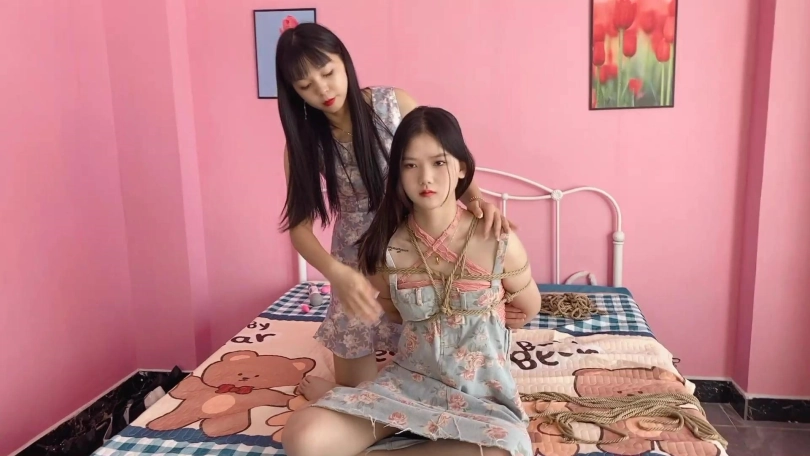 两位美女互相KB,饶痒痒,kb的手法看两位是玩家,都很熟练
