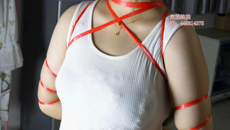 【子衿】美琦细绳勒脖五花反手绑手腕手指站立绑腿,捆绑细节
