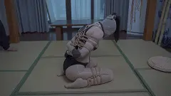 结果遇到了陌生人,给她解开以后逼迫她穿上新的一层连体丝袜,