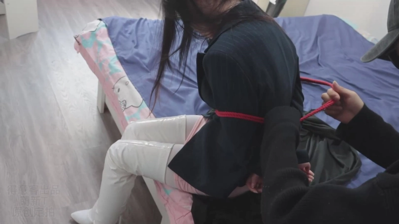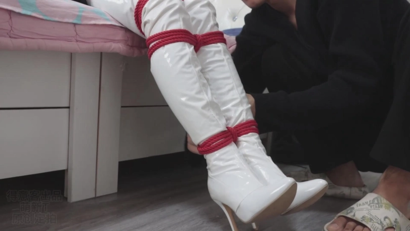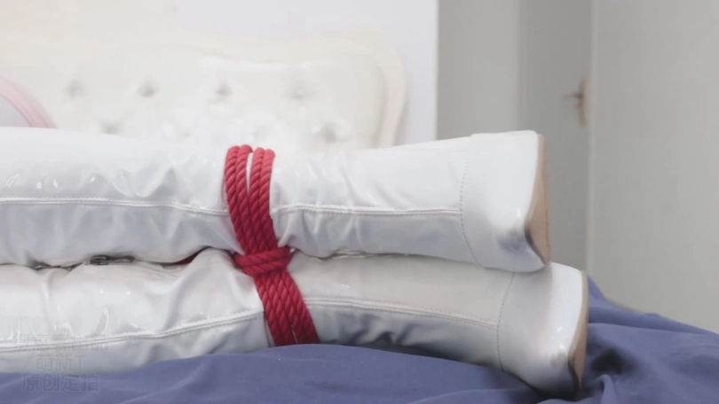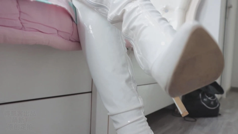 而且这次是西装外套搭配包臀粉裙,白丝加白色过膝长靴!