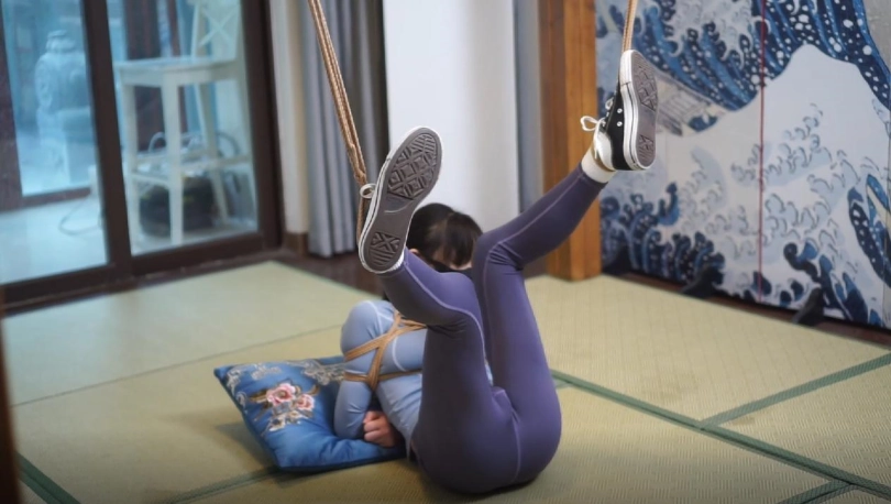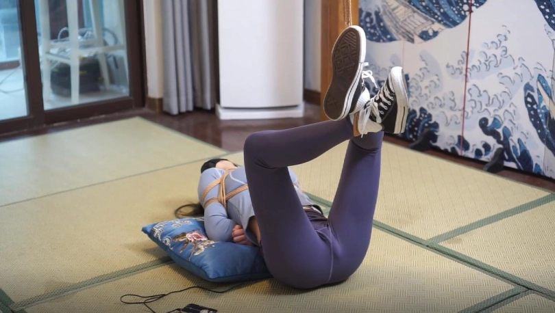 穿着瑜伽服瑜伽裤的小0在家里休息,谁知混进来一个歹徒
